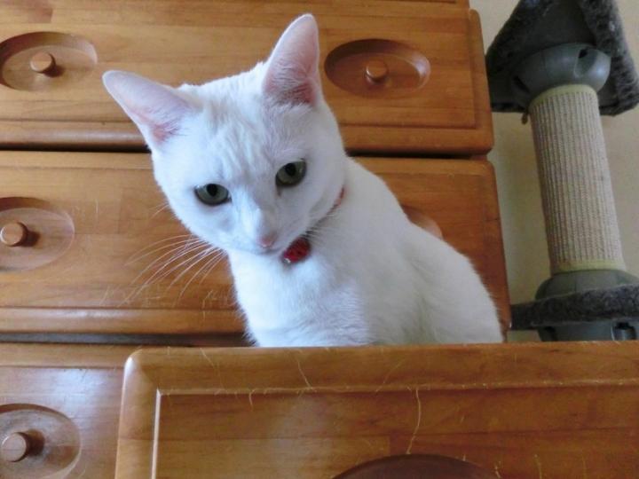 タンスの引き出しが大好きなリン。タンスが傷だらけです。