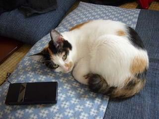 三毛猫と座布団って合いますね。