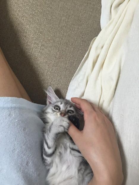 ちる猫さん、あんなにお目目キラキラさせながらゴロンしてたのに…