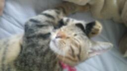 お腹空いてたのかほぼ完食して今は、気持ちよさそうに寝ています(σω-)。о゜