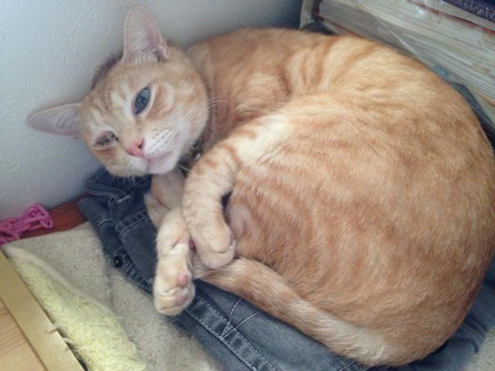 手のにおいを嗅がせておちついたところを捕まえました、フゥ〜´д` ;
