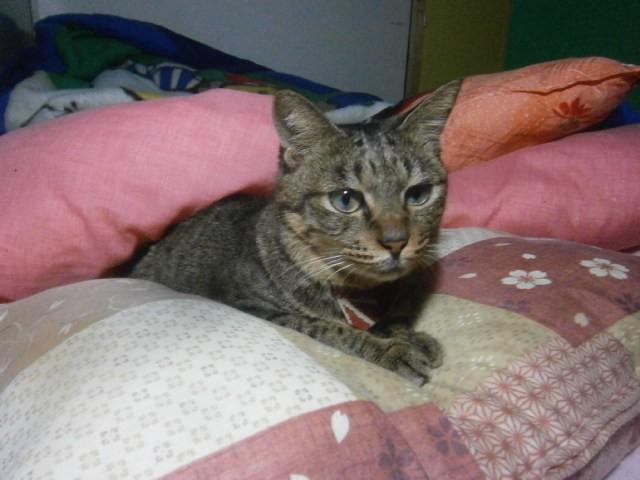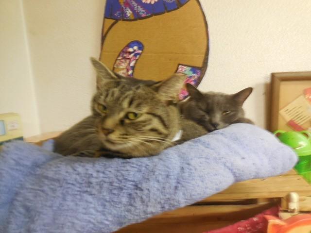 お客様が来ると「遊んで~」起きるチエに寝続けるユズ