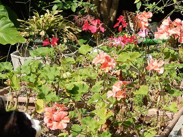 玄関先のゼラニウムにアゲハ蝶がやってきた!