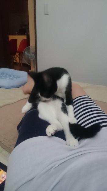 膝のうえで器用にけづくろい。
