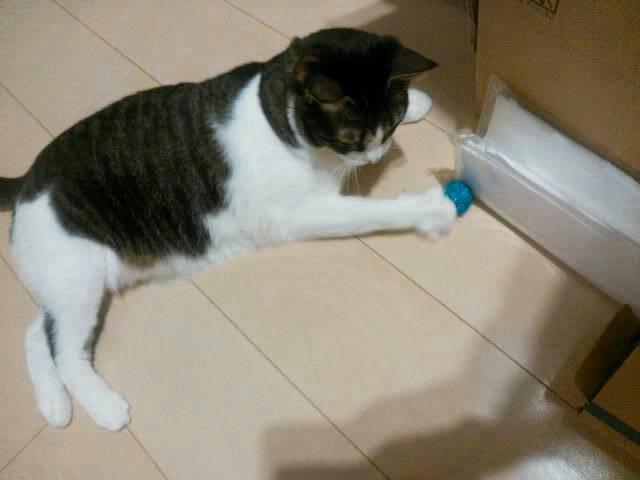 本ニャンには、犬みたいな、取ってきた→投げてくれる→飼い主カマッタウレシイ!→また取りに行く!という構図はないみたいですね。