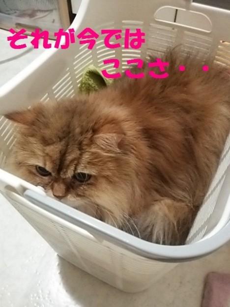 取り込んだバスタオルを入れたカゴに入って寝ていただけ~^m^