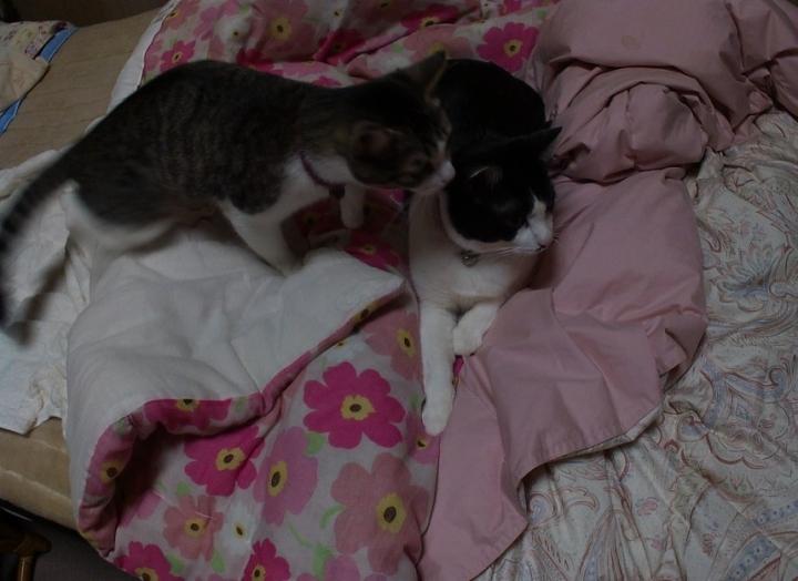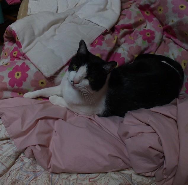 午後、お母ちゃんのベッドで、くつろぐハチ君。