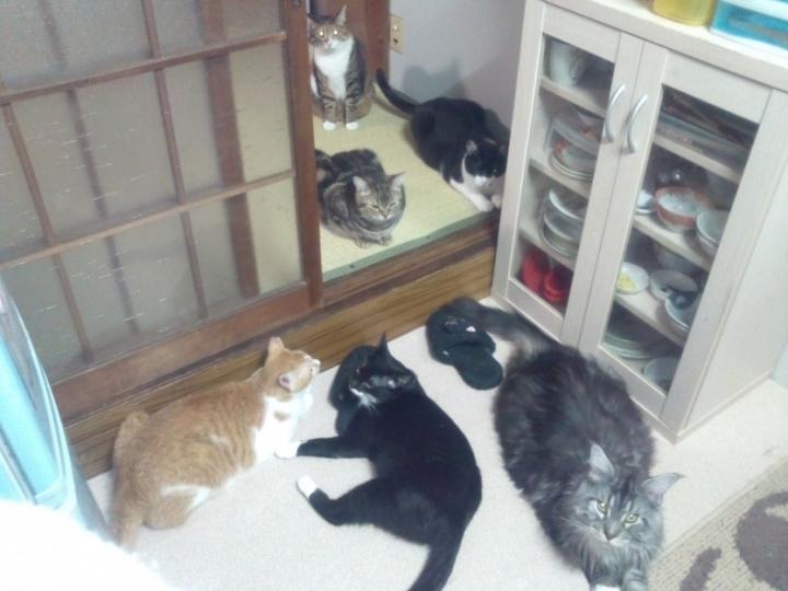 仕切りの襖を取っ払い、ワンルーム風にしてニャンズが思ってたとおり