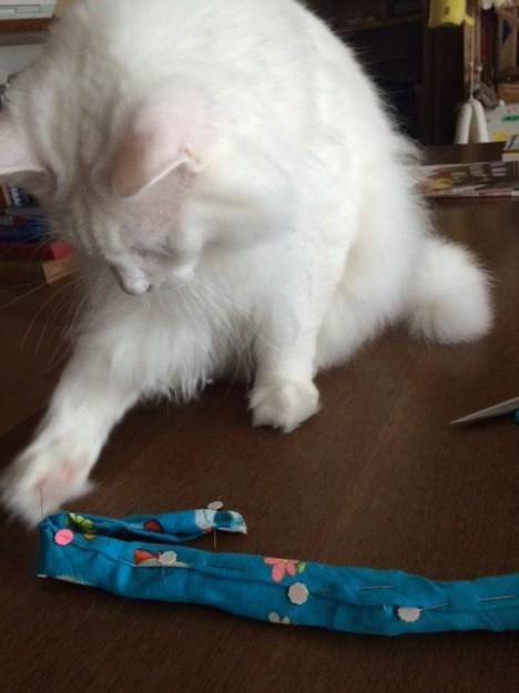 マロも邪魔しにくるし、紐を2本縫うのに、いつもの2倍時間がかかりました。