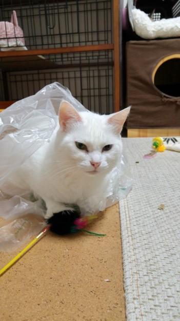 今まで誘導しても入らなかったビニール袋に初めて入ったマリーちゃん。