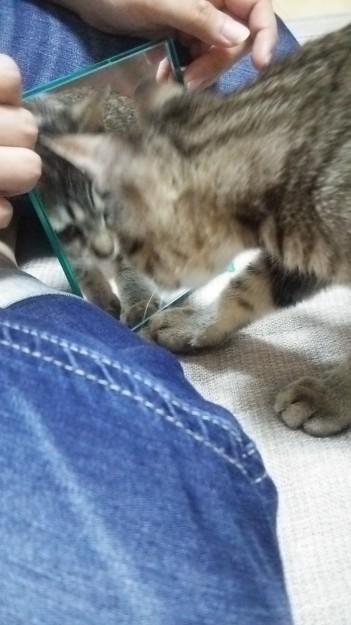 最初より格段に大きくなっているのに気付いて驚き! 仔猫の成長は早い。
