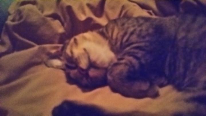 昨夜は御主人の布団の上で先に寝てたので、御主人は端に追いやられて就寝。これが猫のいる幸せ(*´ω`*)