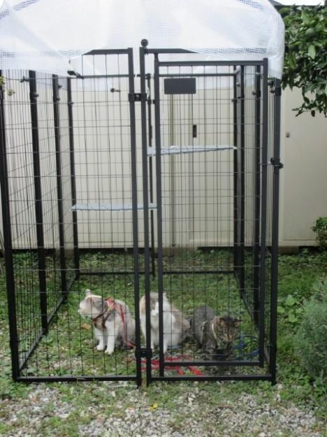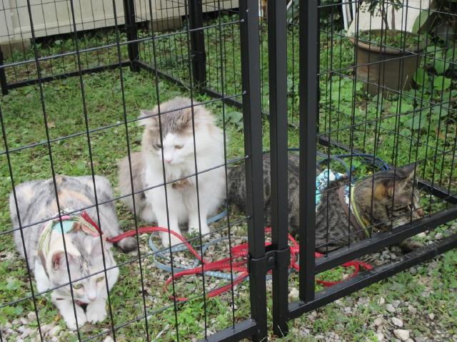 初めてのキャットランで固まる3にゃん。