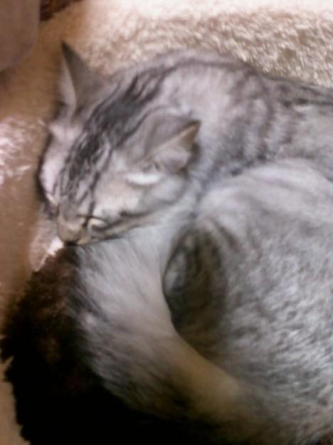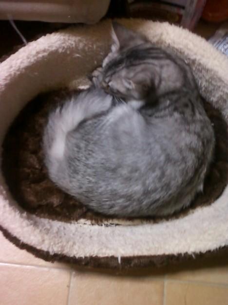 ベットの脇に置いていたのでベットで一緒に寝る方がいいのですが・・・セイダブルのベットにニャンと旦那ちゃん・・・せまーーいのでw