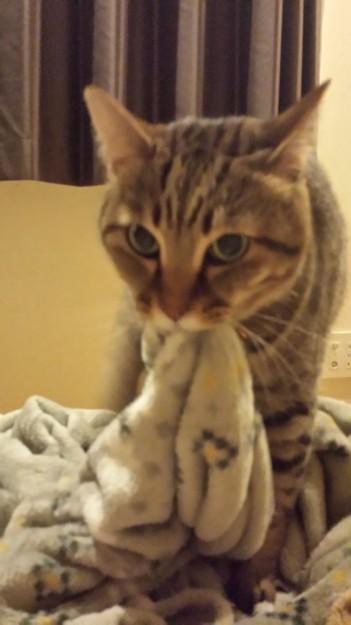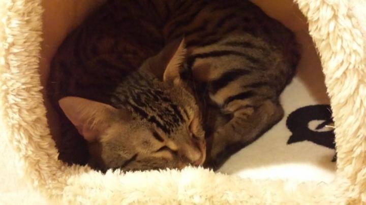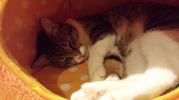 寝る前の3匹、猫ベッド出しました↓↓↓