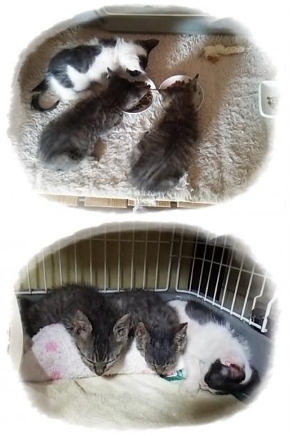 お腹いっぱいになり少し遊んだら、並んでペットボトル湯たんぽでお休みw