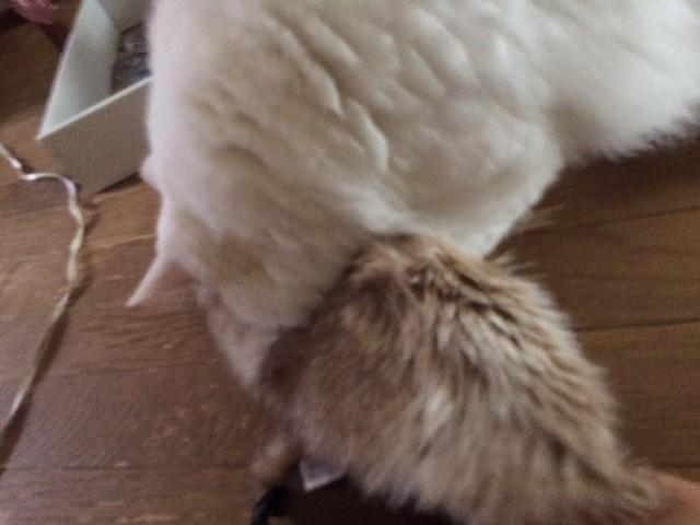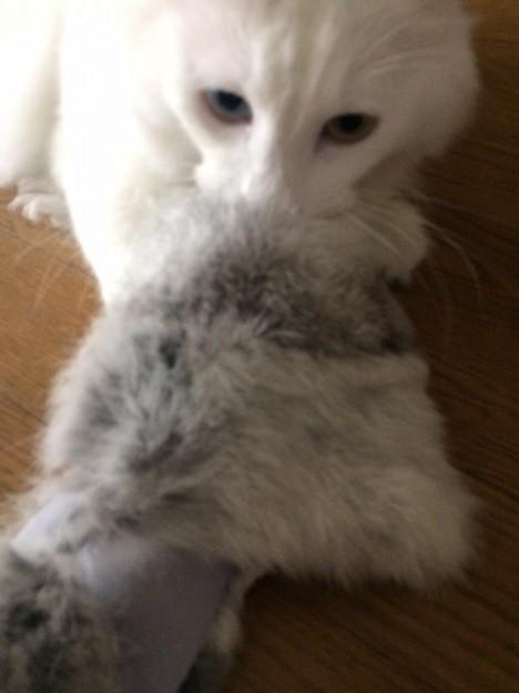 何とかやっと取り返すと、今度は色違いのファーをくわえて
