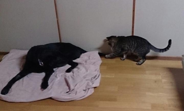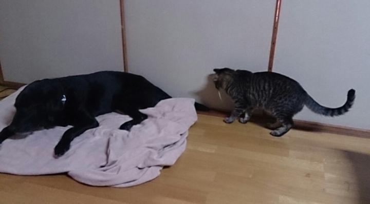 こないだ、クロが立ってご飯食べてると、ぶら下がる尻尾に