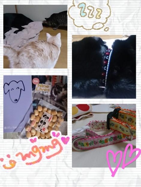 クロは紺地に花柄、モコは茶色地に花柄♪