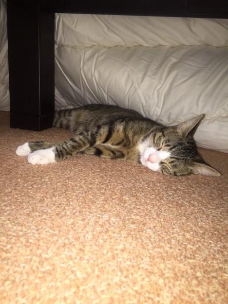 叩き役(おこたの外)が疲れて猫タワーへ。