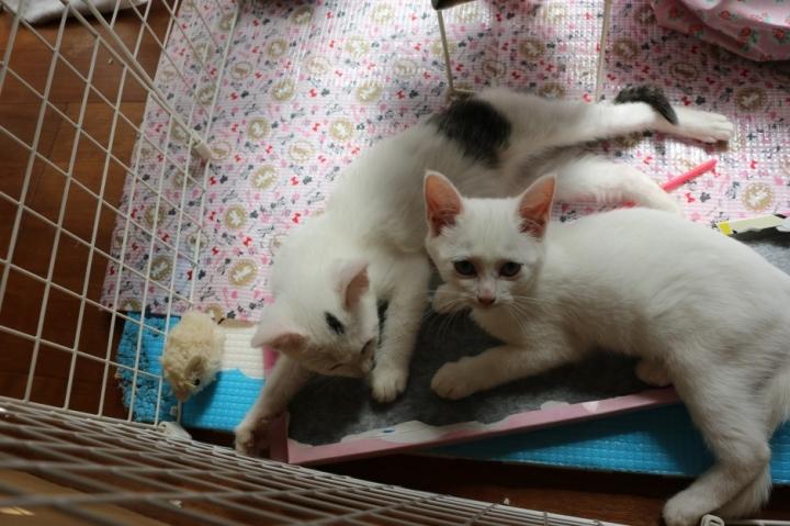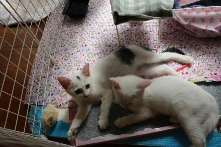 ひなたぼっこをしながら、うとうとしている子猫ちゃんたちです。
