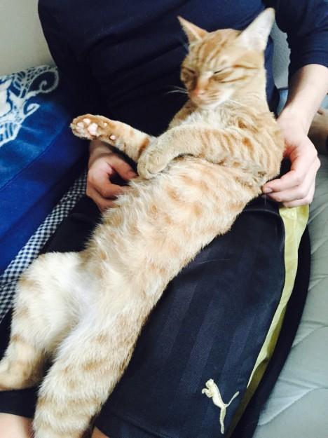 ウルは遠慮なしに相方の腹ベッドでおやすみ