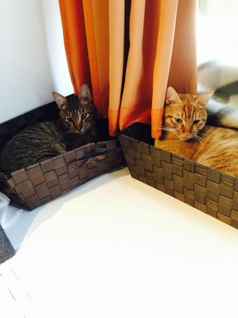うちのにゃんずは固めなダ◯ソーのカゴに入ってます。