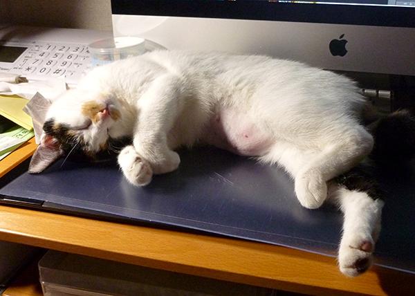 夜、パソコン前で作業していたら陣取って寝てしまい