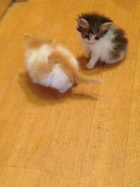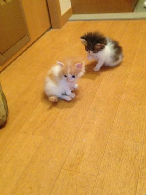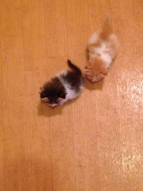 兄 おなかが空いたにゃ・・・(ぺろぺろ)
