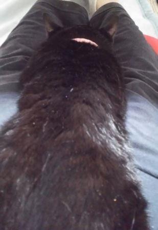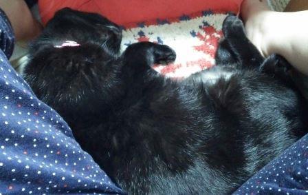 夕方から膝に来たんですが、両手と顔を足の間にスッポリ入れて熟睡。