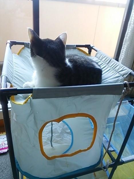 ハンモックから2階に入れるようにカサカサ素材の入り口の向きも直しました。