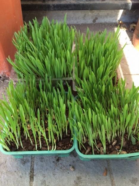 結構びっちり種を蒔いたので、売ってる猫草みたいに成長しました。