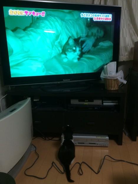 先日放送していた猫特集の番組を凝視するピヌ君。
