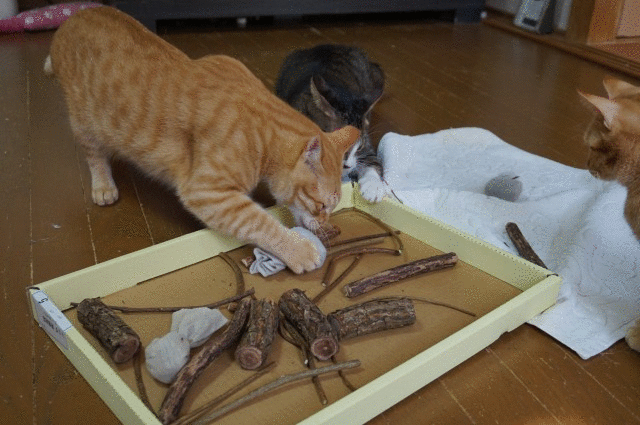 たくさんのお土産の他に、2人とも猫を遊ばせるためにジャラシ持参できてくれました。