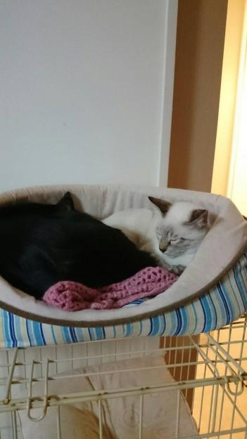レアです、我が家の春王女のベットにもぐりこんでます、威嚇なしです。