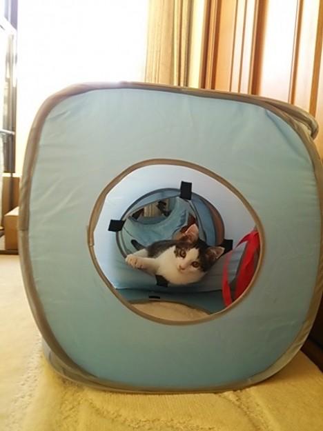 部屋をのぞくと、タワーかトンネルで寝てる。