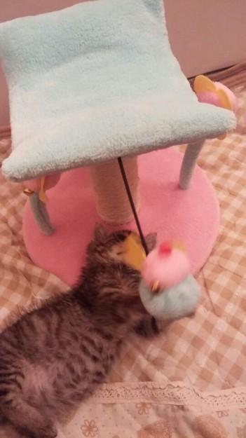 初めは様子を見てたけど楽しいんだよって揺らしたりしたら遊びはじめてくれました。