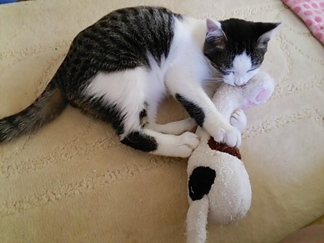 肉球の色も同じなので、足を裏返してぬいぐるみと並べた写真を撮りたいけど、未だ上手くいかず。