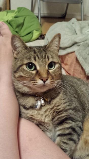 正確には寝てませんが、ワタシがソファにいるとすぐに膝の上に。