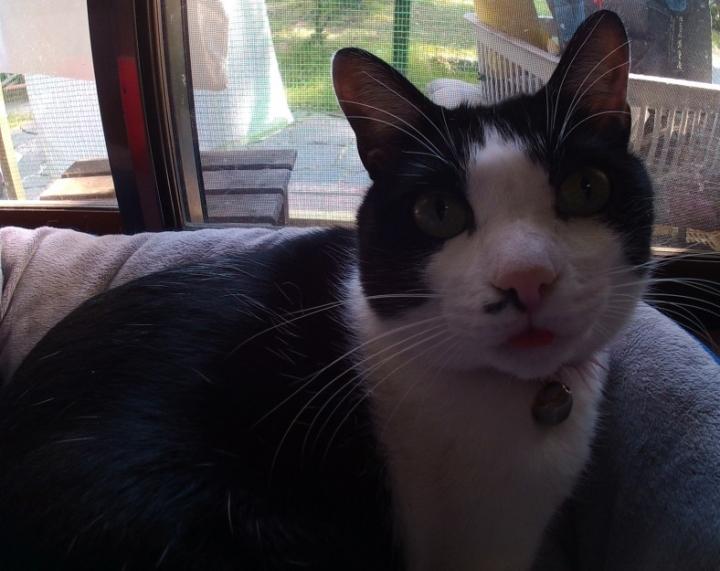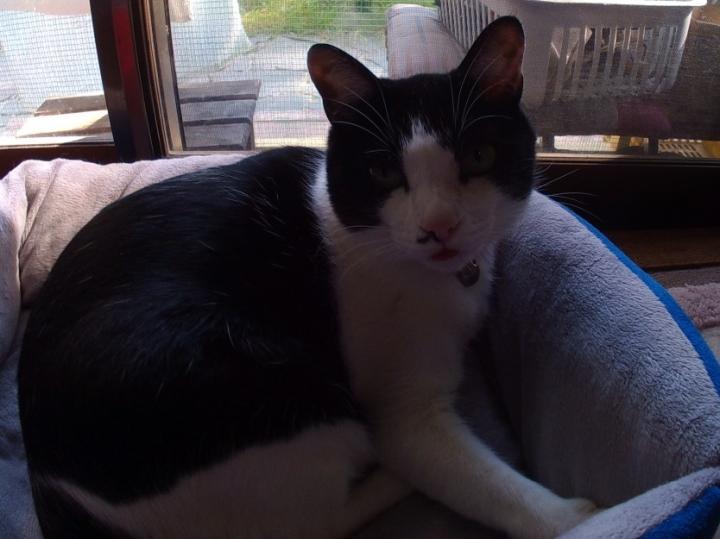 食後は、ペットベッドでまったりオヤスミしようとする、ハチ君。