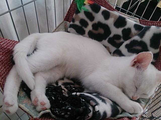 2匹は、慣れるまで一応夜はケージの中でおやすみしているそうなのですが、