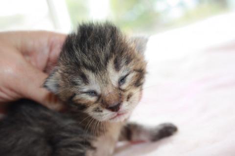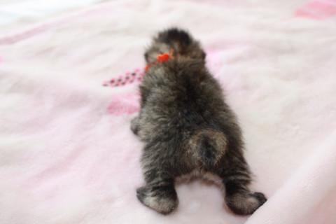 かわいいころころの赤ちゃんきじとられいかちゃんです。短~いボブテイルがとってもキュート。まだ小さいので性格ははっきりわかりませんが、ミルクから育てるので大変人懐こくなります。お目目が開きかけでかんぺいちゃんみたいですが、先にぱっちり開いた兄弟は大変可愛くなりました。