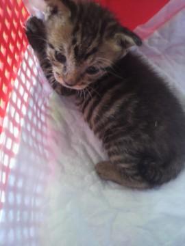 自宅敷地内にて保護しました。母猫の育児放棄だと思われます。