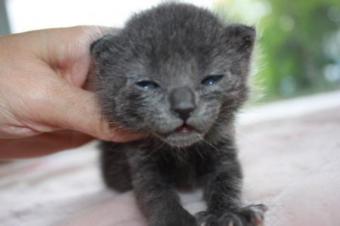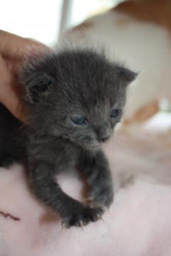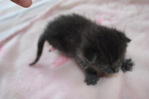 かわいいグレーの子猫、こっぺちゃんです。まだ小さいので性格ははっきりわかりませんが、ミルクから育てているので大変人懐こくなります。すでにちょっと触っただけでゴロゴロが止まりません!現時点ではかなり大柄なので大きな子に育つかもしれません。