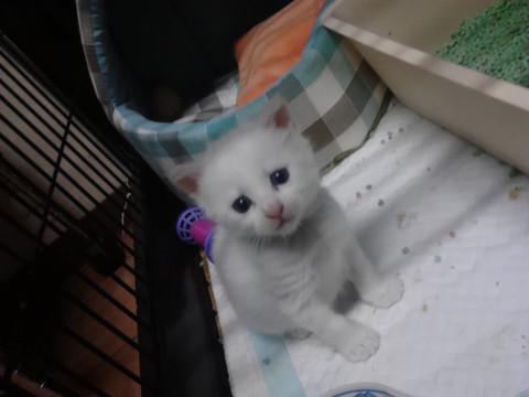 全身白で今のところブルーアイです。(子猫なので変わる可能性もあり)