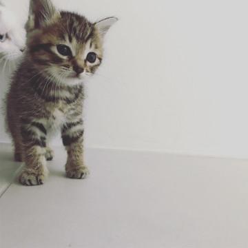 抱き上げ兄弟や親猫がいないかしばらく様子を見ましたが他には現れず、近くには歩道スレスレで車は通るし下には川もあるので連れ帰りました。