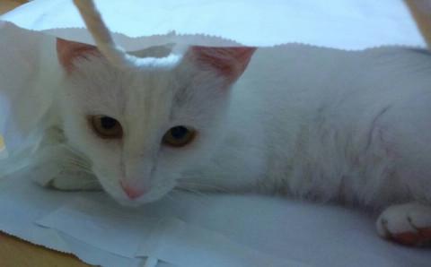 しっぽだけキジトラ模様の美しい白猫ちゃん