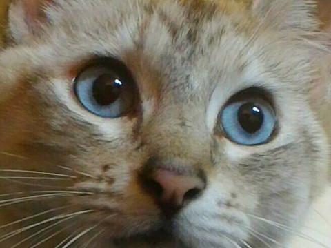目はブルーで、しっぽは長くて真っ直ぐです。