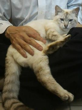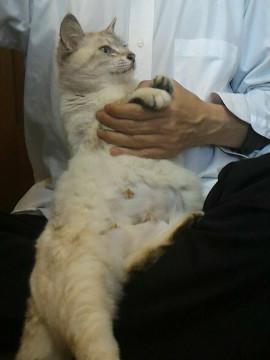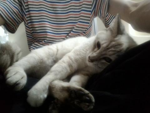体調はすぐに良くなりましたが、とにかくこの子は人が大好きな膝乗り猫!人が座るのを待っていて、座った途端にのってきます。