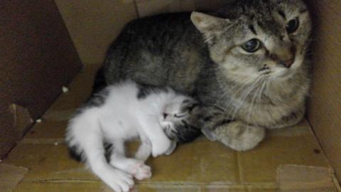 そのまま保護して産んでもらいました。子猫たちが離乳後、母猫は不妊手術をします。